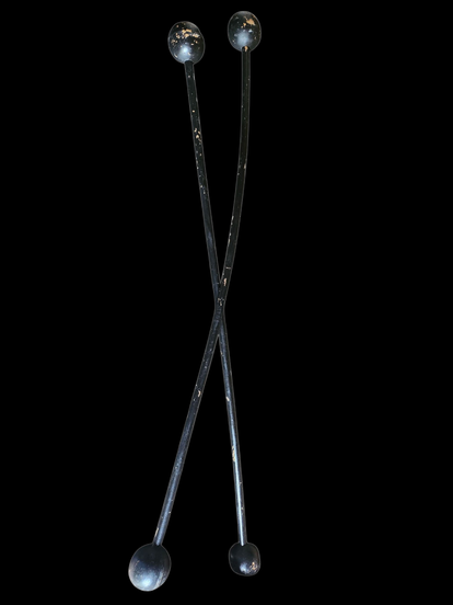 Pair of ebonised wooden early 1900's circus clown barrels. Nice patina, not heavy we're faux strongman barrels used in clown act. Both approx 130 cm'ers long.