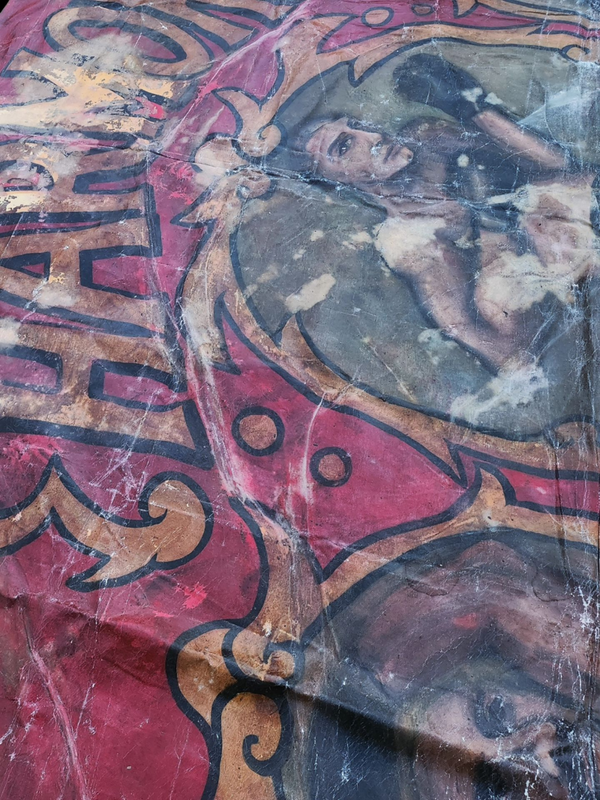 All original, 1930'ties circus fairground boxing troup banner. Handpainted onto thick canvas. Approx 290 cm'ers high, 285 wide.